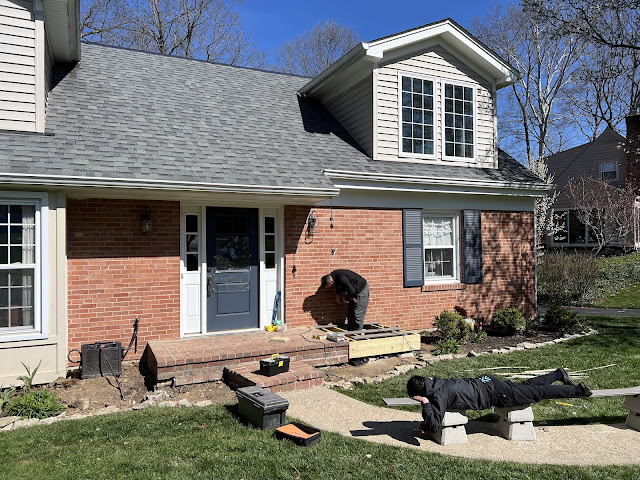 Dann geht es weiter mit dem Anbau der zweiten Seite unserer kleinen Veranda. Die Steine werden gelegt und einbetoniert,